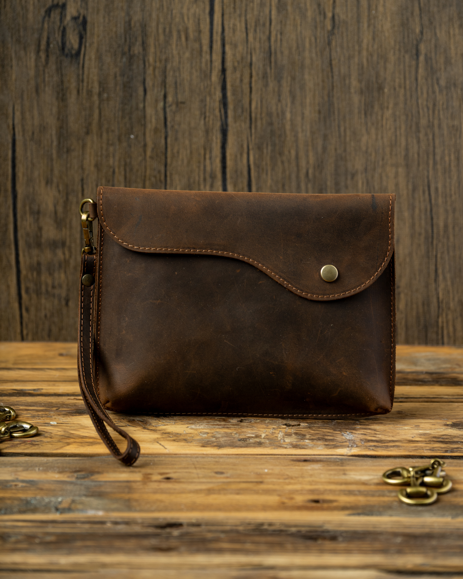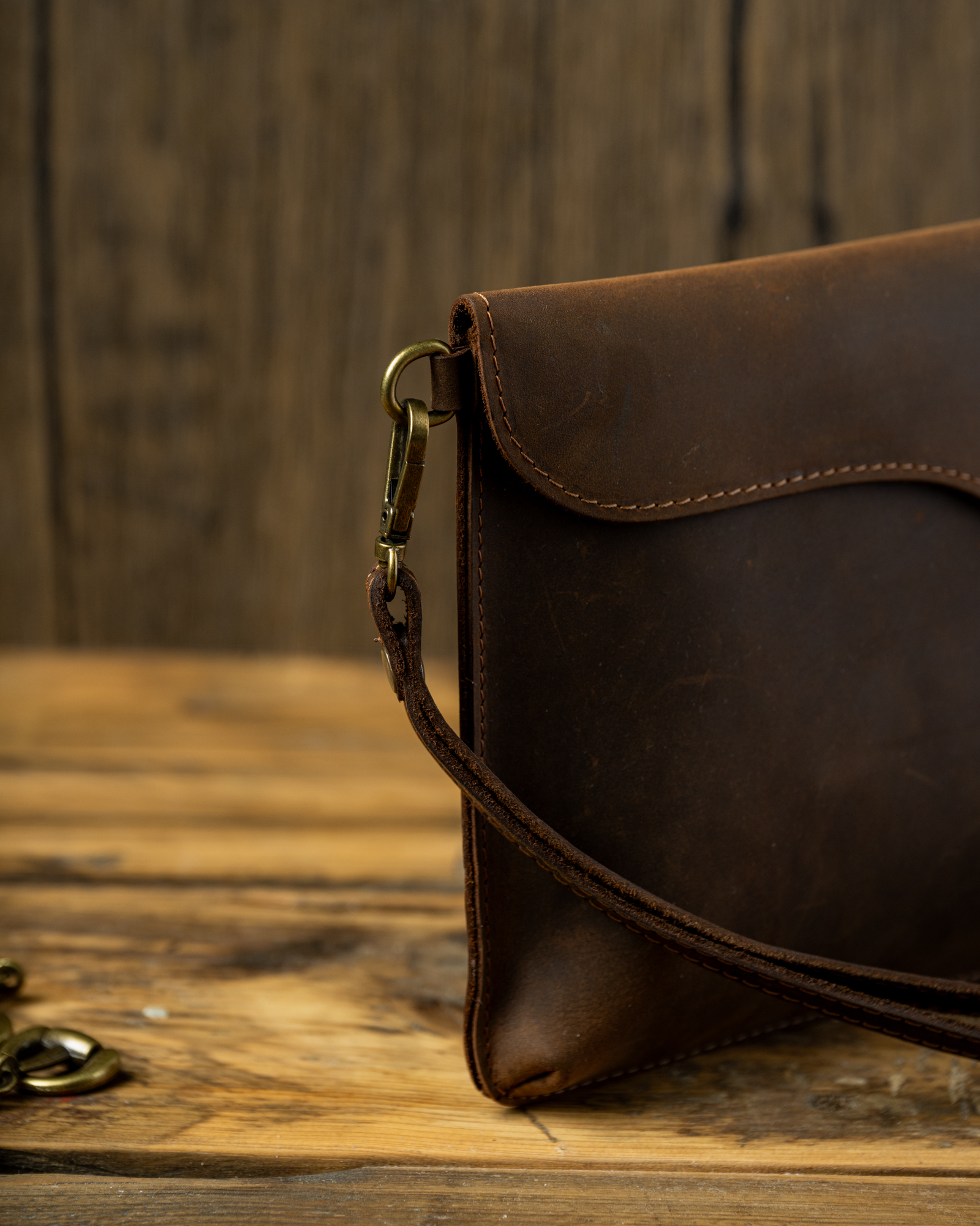 Η Skirt Bag είναι ένα εκλεπτυσμένο, χειροποίητο και ιδιαίτερο τσαντάκι χειρός που αποτυπώνει τη διαχρονική αισθητική του equestrian look. Κατασκευασμένη από υψηλής ποιότητας δέρμα Crazy Horse, ξεχωρίζει για τη φυσική υφή και τον κομψό, δομημένο σχεδιασμό.