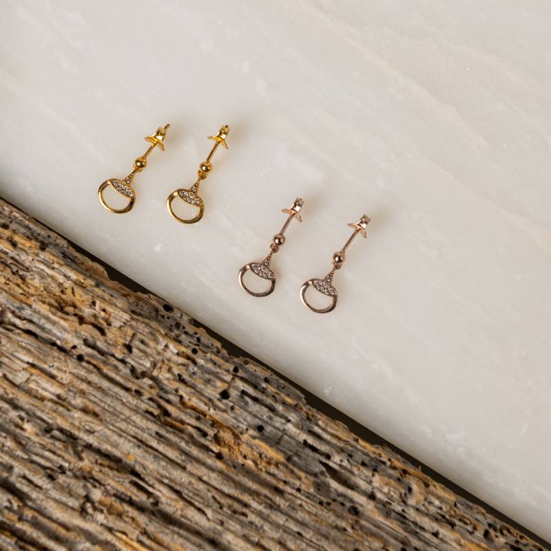 Κομψά και διαχρονικά σκουλαρίκια που απεικονίζουν την κλασική απλή στομίδα, ένα βασικό στοιχείο του ιππικού εξοπλισμού. Αυτό το κόσμημα συνδυάζει την αρμονία και τη χάρη του ιππικού κόσμου με μια διακριτική αισθητική, αποπνέοντας το κλασικό equestrian look.
