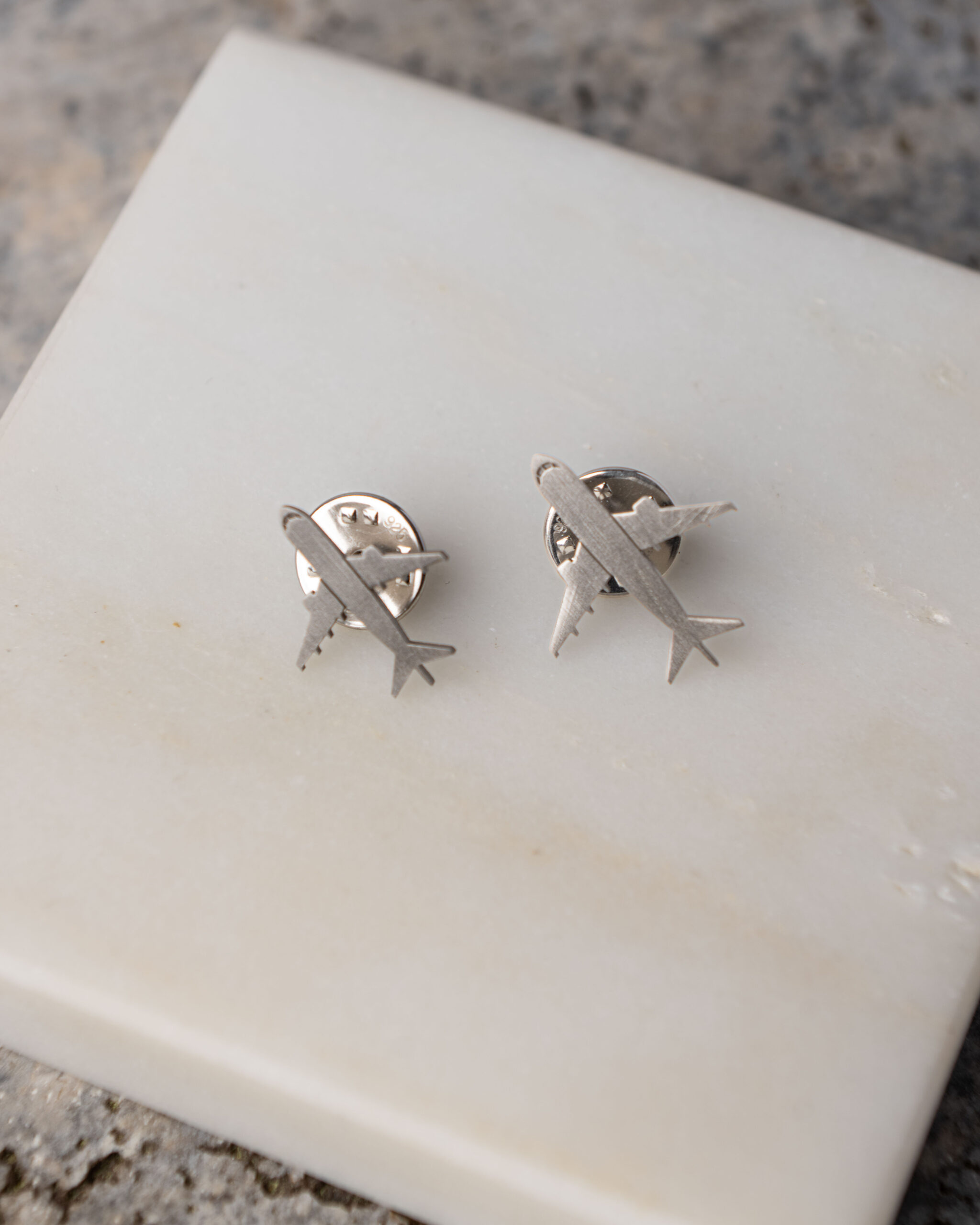 Για ένα ζευγάρι πιλότου και αεροσυνοδού δημιουργήσαμε δύο ιδιαίτερες καρφίτσες που απεικονίζουν το αεροπλάνο όπου γνωρίστηκαν, συμβολίζοντας τη στιγμή που οι δρόμοι τους ενώθηκαν. Κάθε καρφίτσα λειτουργεί ως προσωπικό ενθύμιο αυτής της πρώτης γνωριμίας, μια διακριτική αλλά συναισθηματικά φορτισμένη υπενθύμιση της αρχής μιας κοινής πορείας και των μοναδικών στιγμών που μοιράστηκαν από την πρώτη τους συνάντηση. Ένα κόσμημα που αφηγείται μια προσωπική ιστορία αγάπης και σύνδεσης, με απλότητα και στυλ.